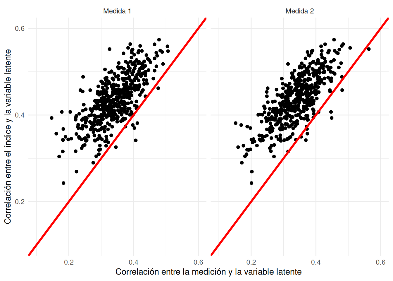 scale_x_continuous("Correlación entre la medición y la variable latente", limits = c(0.1, .6)) +