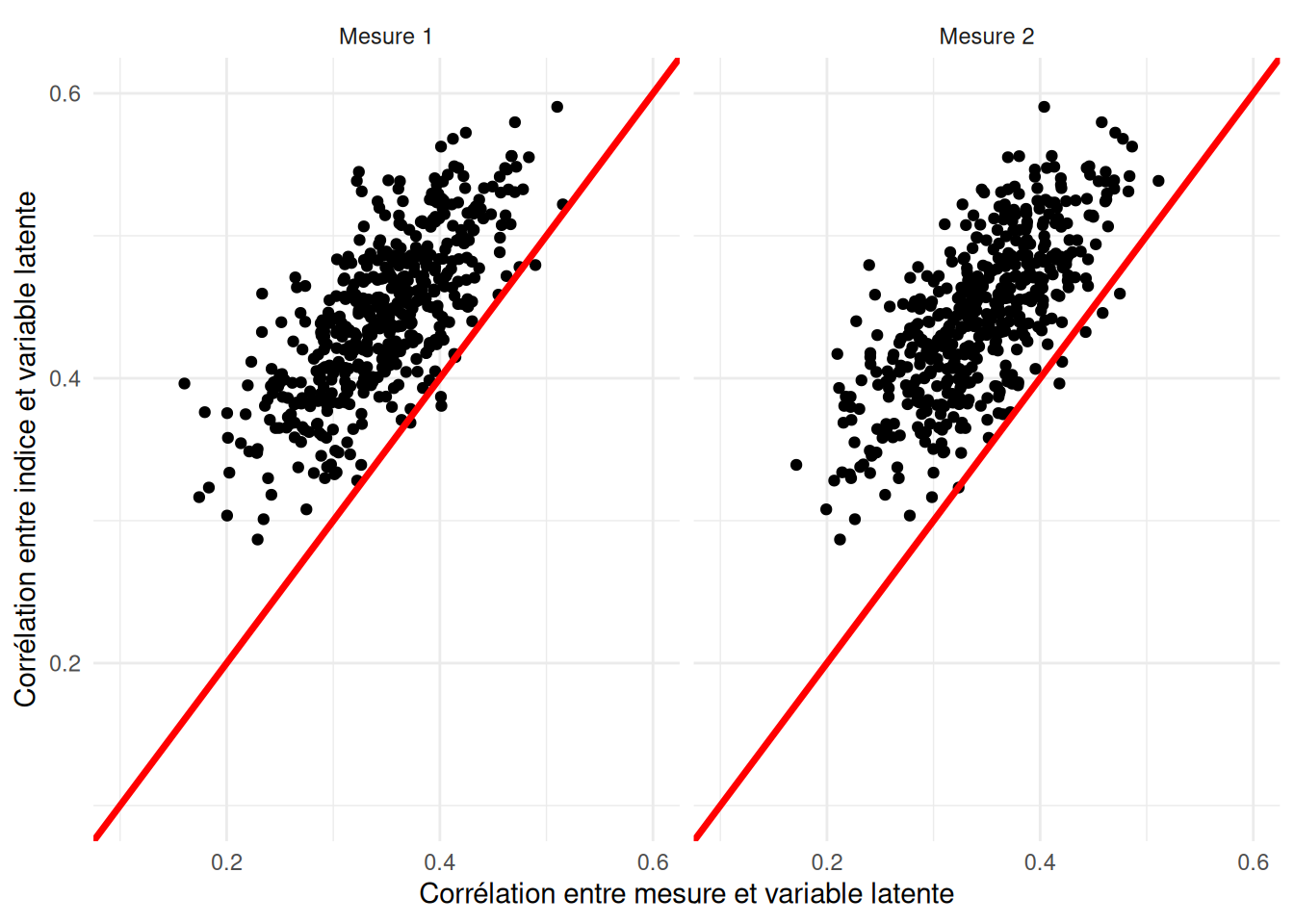 scale_x_continuous("Corrélation entre mesure et variable latente", limits = c(0.1, .6)) +